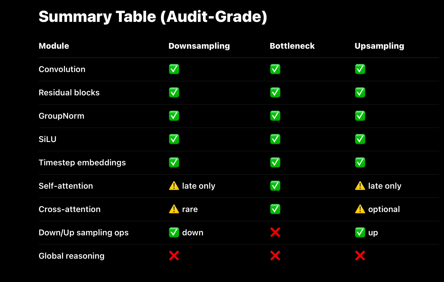 Modern video diffusion models are not monolithic networks that “generate videos end-to-end.” They are structured systems composed of three functionally distinct sub-components, each responsible for a different stage of representation and transformation: a downsampling path, a latent bottleneck, and an upsampling path. These components do not correspond to semantic stages like “understanding” or “generation,” but instead define how information is compressed, transformed, and reconstructed within the model. The downsampling path progressively converts high-dimensional inputs (such as pixel grids or latent frames) into compact latent representations; the bottleneck operates on this compressed state to model global structure and long-range dependencies; and the upsampling path reconstructs coherent outputs from the refined latent state. This encoder–bottleneck–decoder layout is a computational scaffold, not a reasoning pipeline — and understanding this distinction is essential for understanding how systems like Sora actually work.